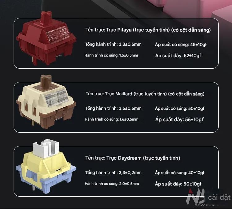 Daydream (linear), Malade (tactile), Dragon-fruit (linear fast) – lubed sẵn, stem POM