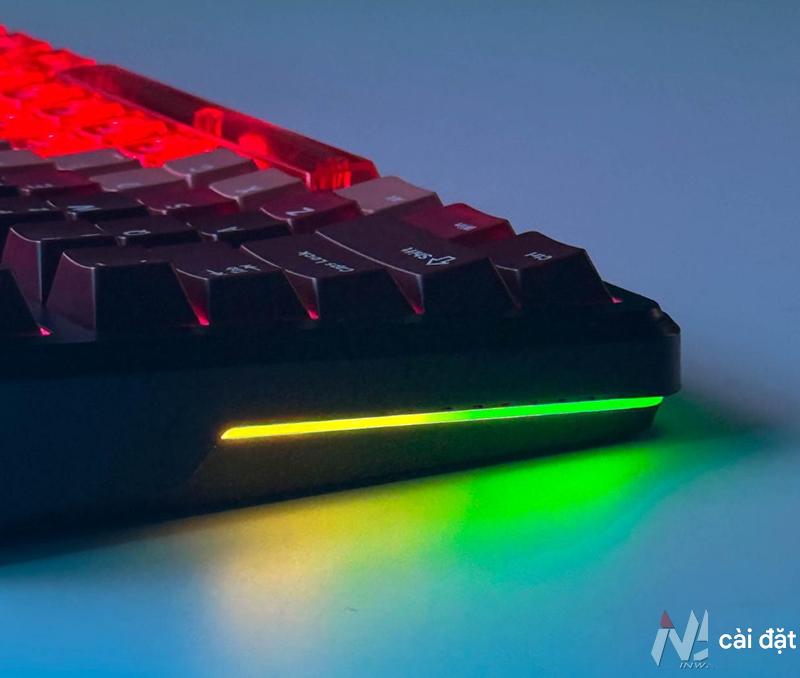 LED dưới PCB, preset >10 hiệu ứng động; hỗ trợ per-key custom & nháy theo nhạc – setup nhanh trong driver.