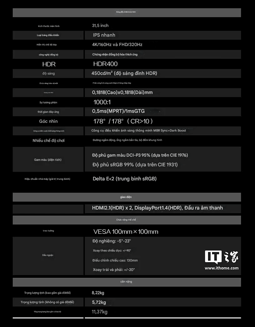 Giá cạnh tranh so với các mẫu 4K 144/160Hz trên thị trường.
