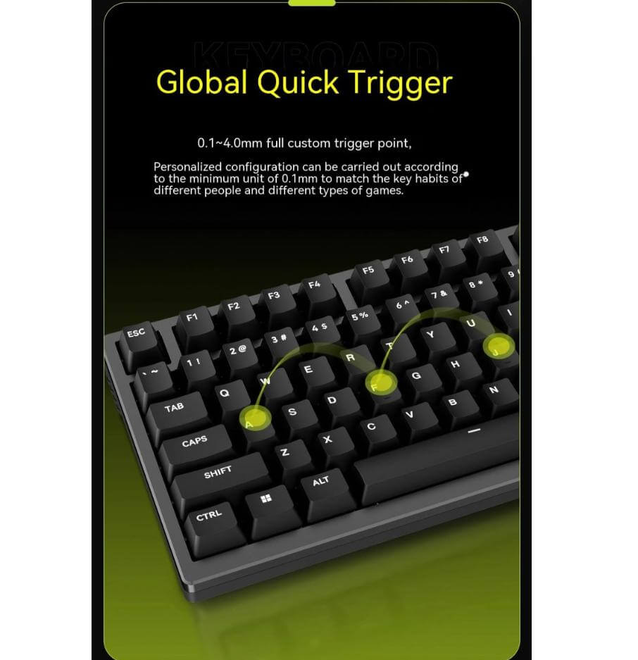 Bàn phím cơ VGN ATK75 Magnetic Switch được trang bị công nghệ Global Rapid Trigger – một công nghệ chơi game hoàn toàn mới, đáp ứng hoàn hảo mọi nhu cầu chơi game của game thủ. Công nghệ này giúp giảm độ trễ, cải thiện cảm giác nhấn phím và nâng cao hiệu suất chơi game.