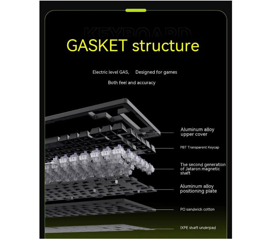 VGN ATK75 được xây dựng với kết cấu đệm nhiều lớp, lắp đầy không gian bên trong một cách hiệu quả để loại bỏ hầu hết tạp âm. Cấu trúc đệm dày cùng cấp điện GAS được thiết kế cẩn thận để đáp ứng hoàn hảo cho việc chơi game, mang lại cảm giác gõ phím êm ái, mượt mà cùng độ chính xác cao.