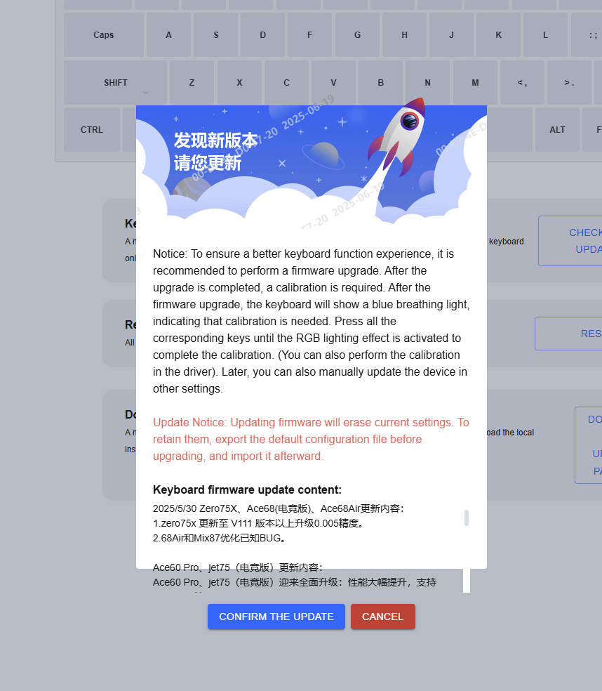 Sau khi ấn Confirm, phím sẽ mất kết nối, và hiện ra 1 bảng như hình dưới, chọn Confirm và đợi phím Update