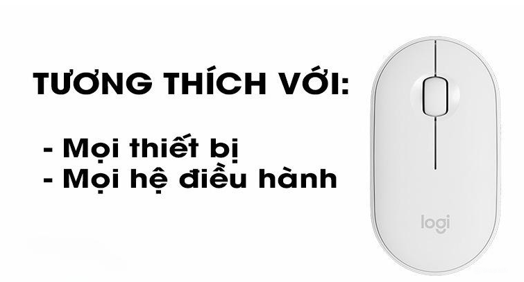 Chuột không dây Logitech Pebble M350 tương thích với tất cả các thiết bị và hệ điều hành từ laptop, pc đến tivi, điện thoại hay là máy tính bảng,…