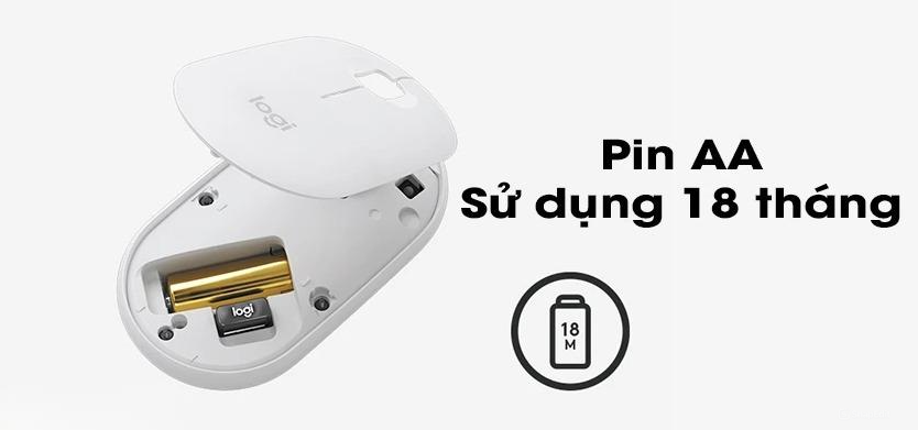 Chuột máy tính không dây Logitech M350 được trang bị pin  với thời gian sử dụng lâu khoảng từ 12 - 18 tháng rất an tâm khi sử dụng.