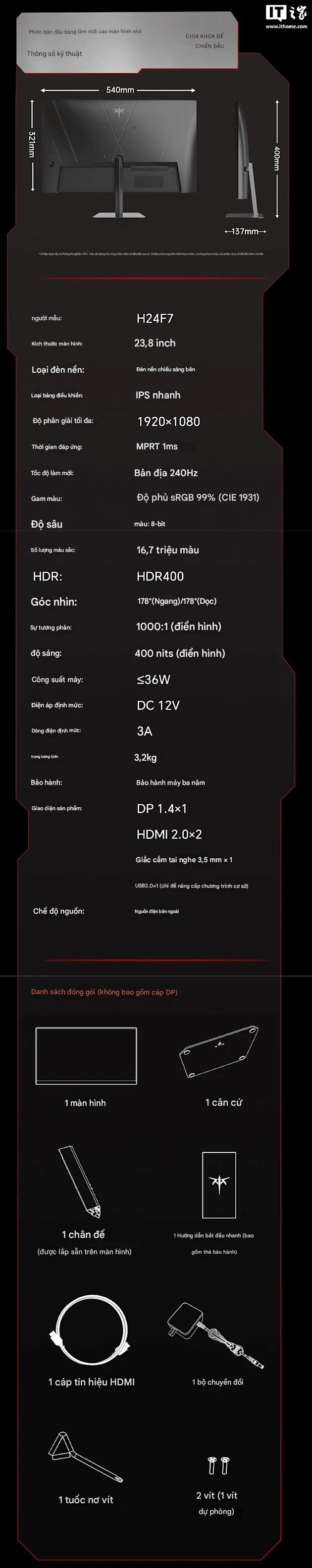 | Kích thước | 23,8'' Fast IPS |