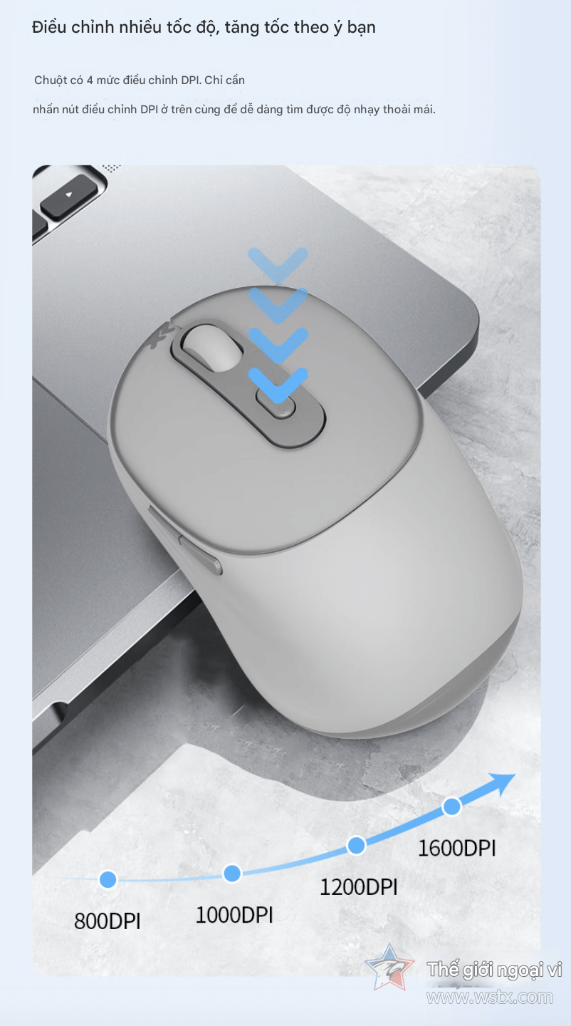 Cảm biến quang học trên Lenovo Xiaoxin M2 hỗ trợ bốn nấc 800, 1000, 1200 và 1600 DPI, đáp ứng từ thao tác văn bản cần độ chính xác tới lướt web, xử lý bảng tính tốc độ cao. Nút chỉnh DPI đặt ngay sau con lăn giúp người dùng thay đổi tức thì mà không mở phần mềm.