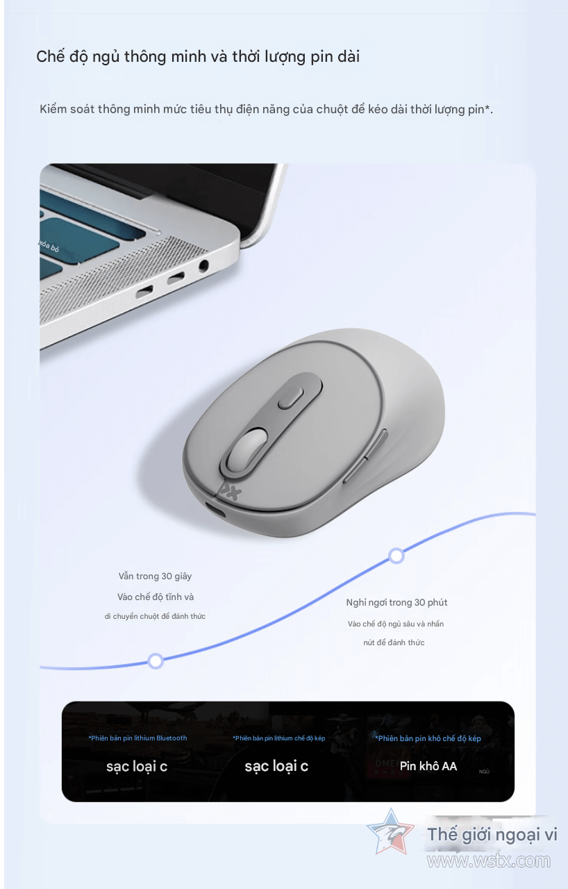 Chiếc M2 được Lenovo tách thành hai phiên bản nhằm chiều đa dạng nhu cầu. Bản pin thường sử dụng viên AA phổ thông, tiện lợi thay thế ngay khi hết năng lượng, giữ mức giá chỉ 49,9 tệ. Trong khi đó, bản pin Li-ion tích hợp 450 mAh nâng giá lên 59,9 tệ nhưng đổi lại là khả năng sạc lại qua cổng Type-C. Cơ chế tiết kiệm điện thông minh cho phép chuột chuyển sang chế độ tĩnh sau 30 giây không dịch chuyển và ngủ sâu khi không dùng 30 phút, góp phần kéo dài thời gian làm việc liên tục.