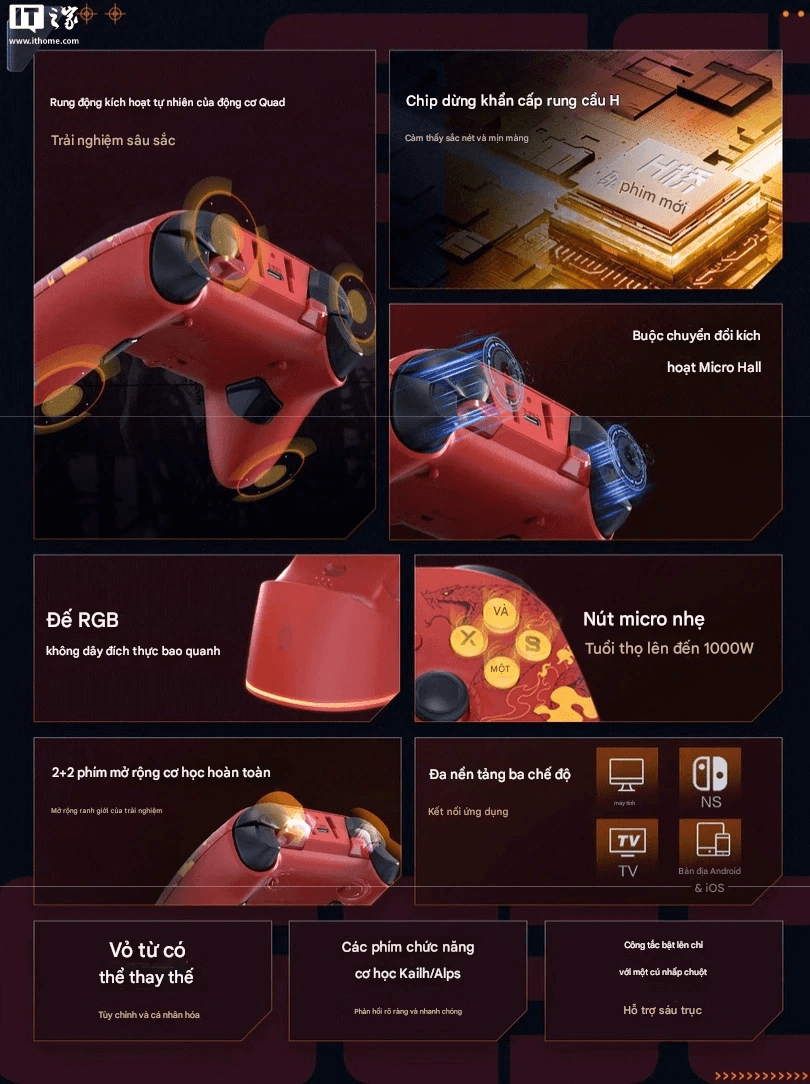 Phần cứng nổi bật: Hall TMR joystick + micro-trigger quang