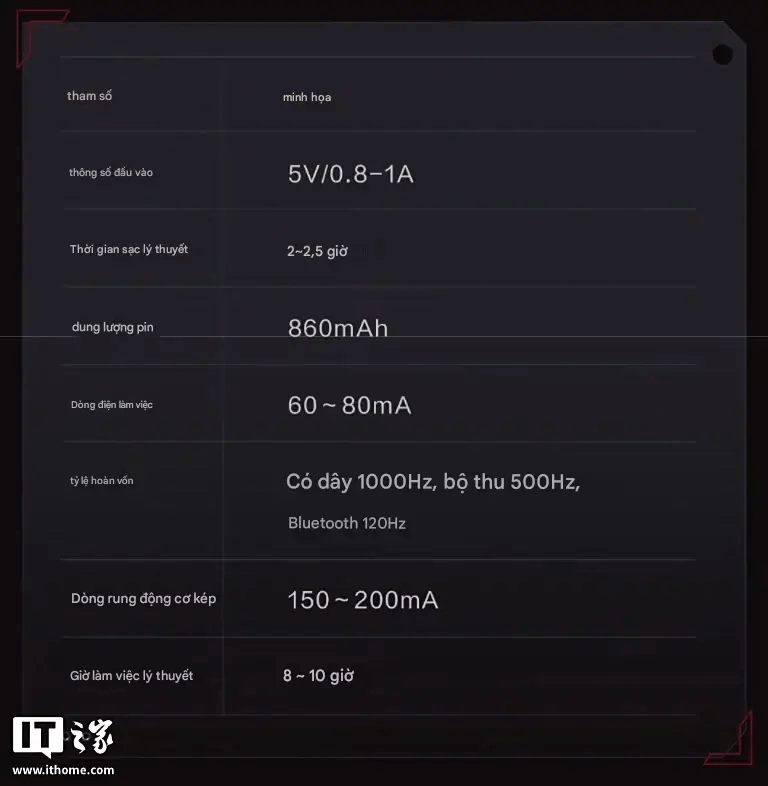 Pin 860 mAh -> 8–10 giờ chơi ở 2.4 GHz/LED on.
